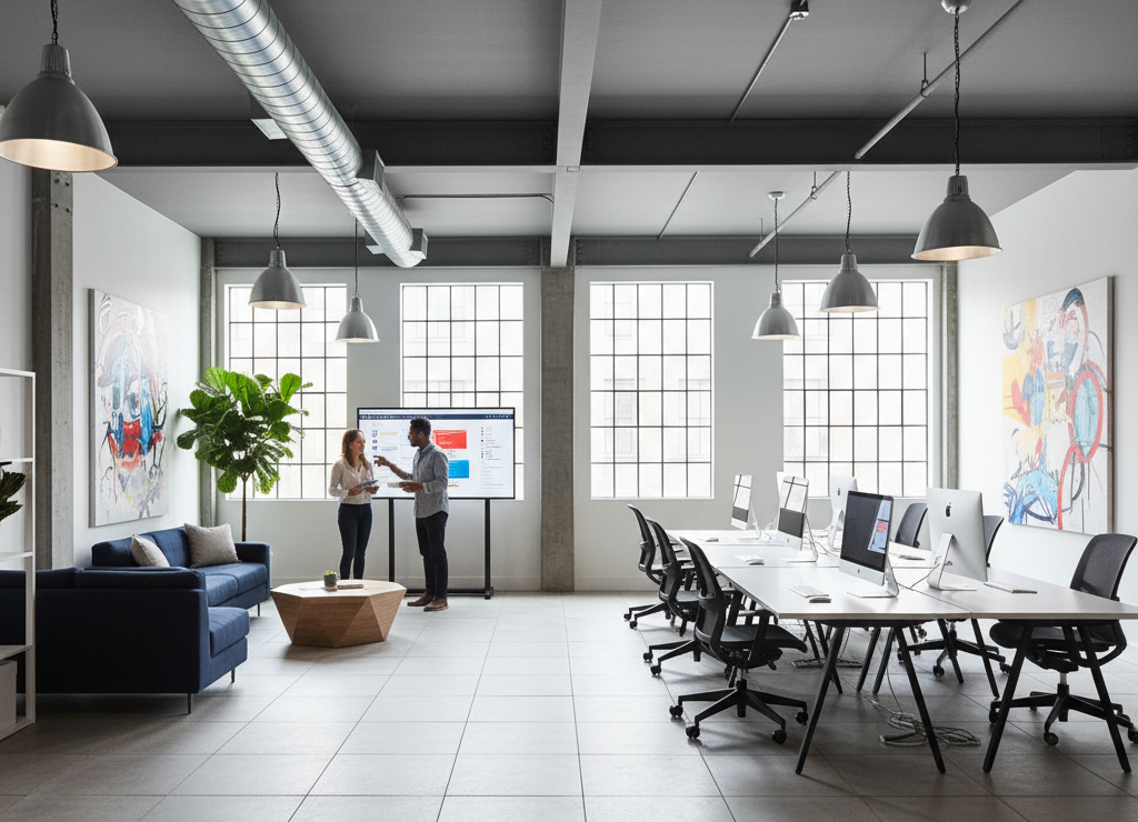 A creative office built to spark innovation, where industrial steel meets refined minimalism.