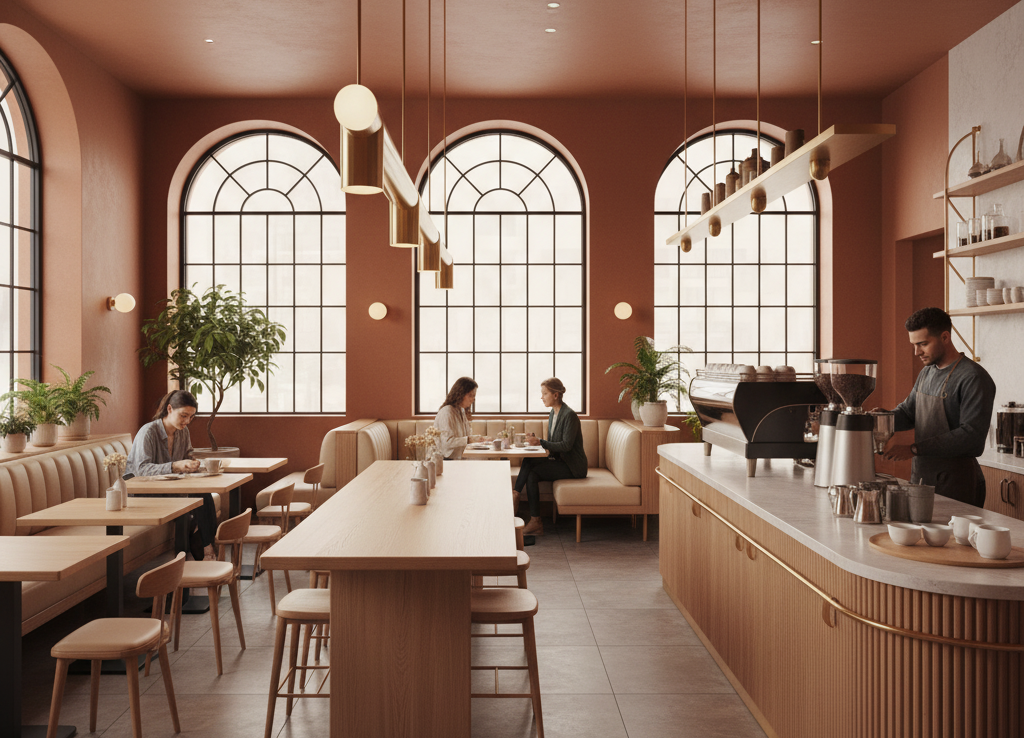 Concept: Bring light and warmth through natural wood tones and organic textures.